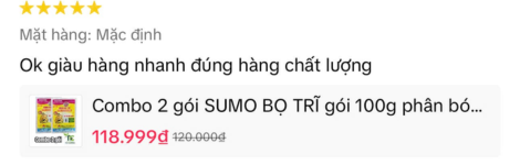 Bộ sản phẩm COMBIPLUS.A VÀ SUMO. Plus Vô gạo nhanh to hạt, chắc cậy Xanh lá đòng, xanh nhánh gié, xanh cuống hạt Giai đoạn lúa cong trái me
