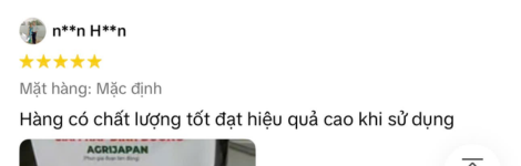 Thể tích thực: 240ml Điều hòa sinh trưởng AgriJapan có tác dụng thúc đẩy cây trồng sinh trưởng mạnh, tăng tỷ lệ ra rễ, đâm chồi đẻ nhánh, ra hoa, giảm rụng hoa và trái, làm xanh lá, mướt lá, chống vàng lá sinh lý. Giúp lúa đẻ nhiều nhánh hữu hiệu, trổ đồng loạt – chống nghẹn đòng, giúp hạt lúa mẩy, sáng chắc, đạt tiêu chuẩn xuất khẩu.